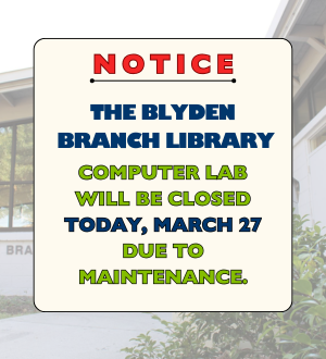 The Blyden Branch Library Computer Lab will be closed today, March 27 due to maintenance.