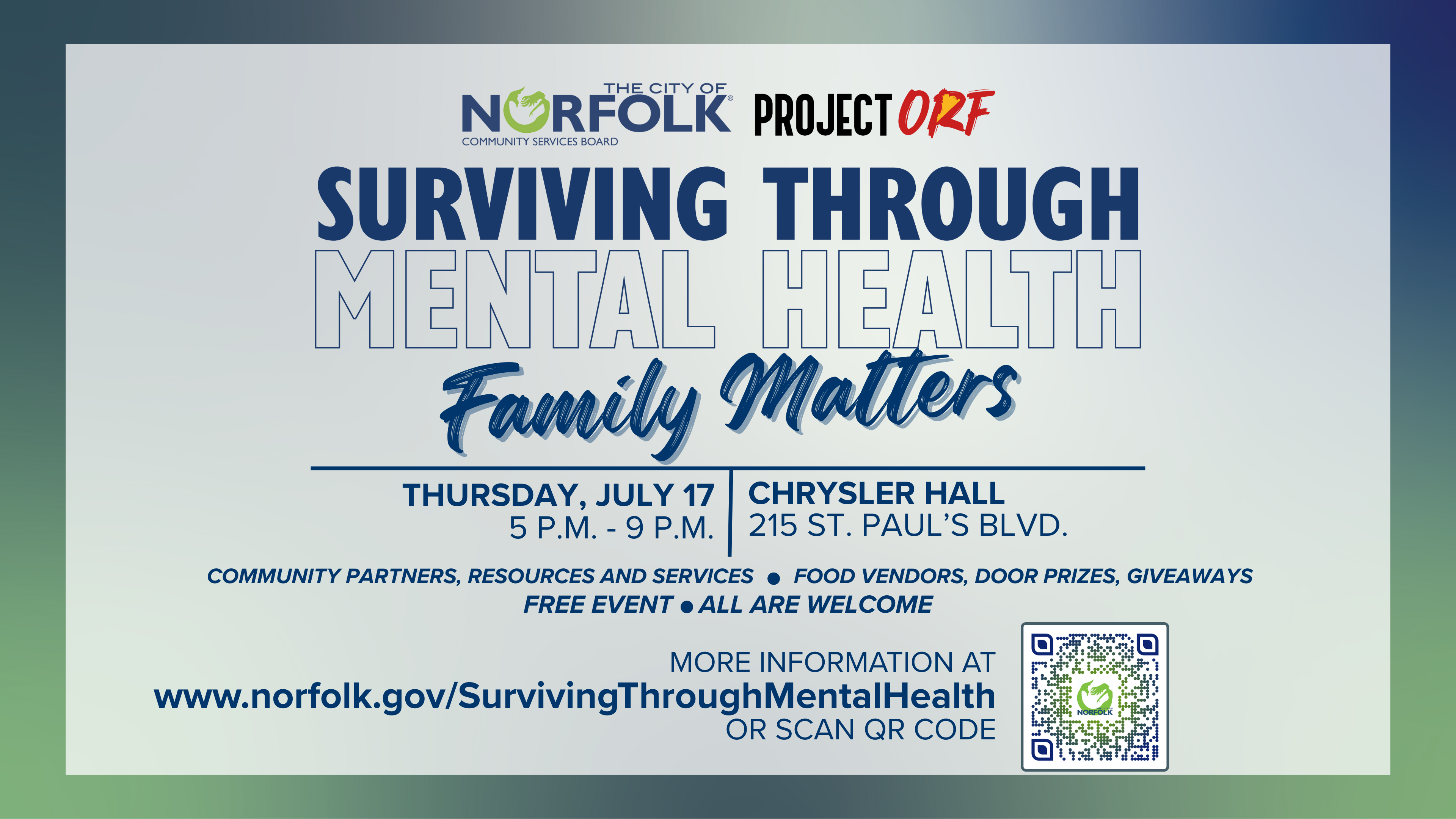 Information and registration: www.norfolk.gov/SurvivingThroughMentalHealth. Click HERE for a printable, sharable flyer and click HERE for a digital display for use on-air and online.